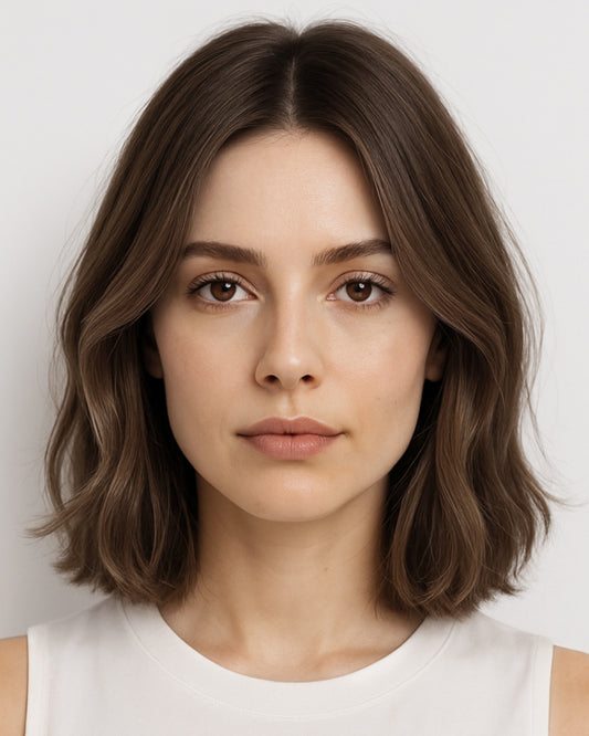 Lena | 14" Medium Brown Loose Wave Bob Human Hair Swiss Lace Front Wig - WW033
