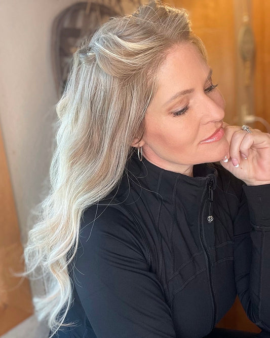 Elsa | 16" Blonde With Dark Roots Human Hair Swiss Lace Front Wig - WW048