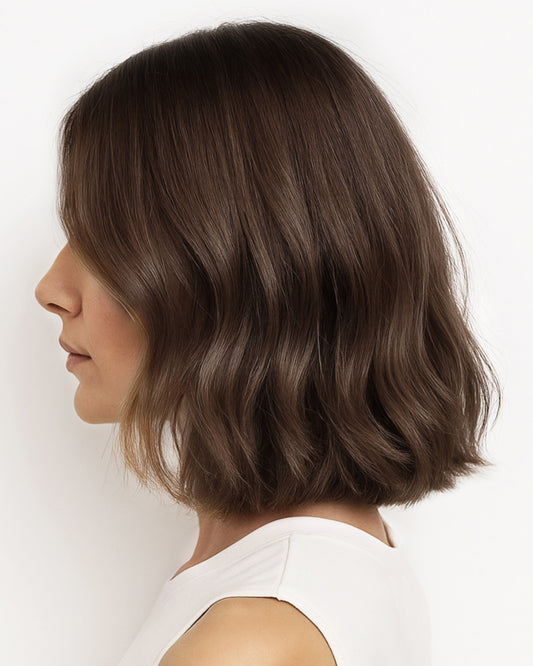Lena | 14" Medium Brown Loose Wave Bob Human Hair Swiss Lace Front Wig - WW033