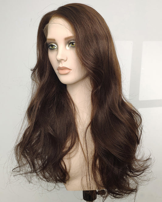 Eden | 24" Warm Chestnut Brown Wavy Glueless Swiss Lace Closure Wig - WW054