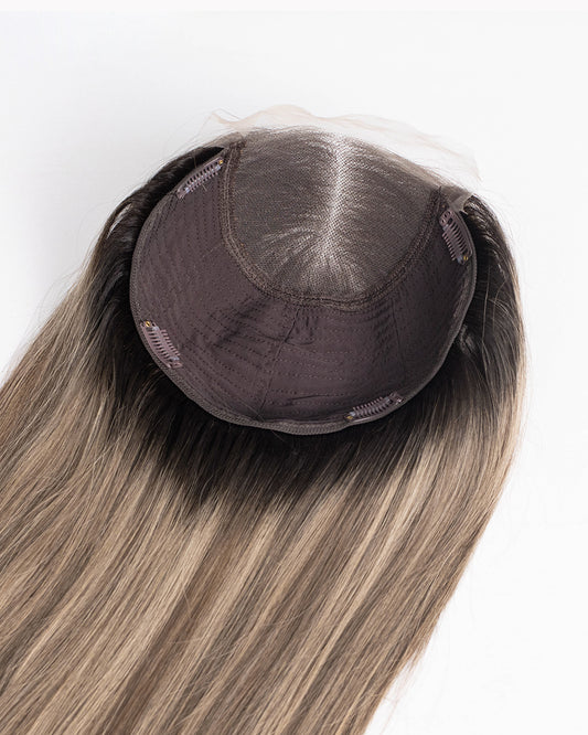 Elodie | 16" Ash bronde 9"x9" Lace Top Human Hair Topper - TLW007