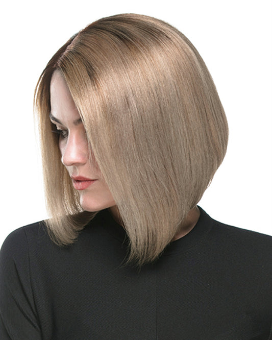Isabel | 12" Lightest Brown Dark Blonde with Dark Root straight bob Human Hair Swiss Lace Closure Wig - WS010