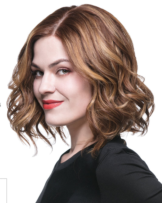 Jessie | 12" Medium Brown with Blonde Highlight Short Wavy Bob Human Hair Swiss Lace Closure Wig - WW016