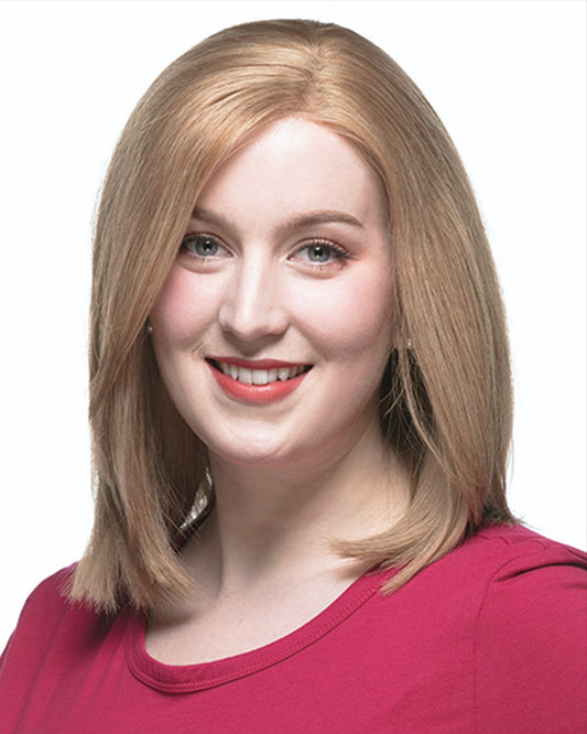 Claire | 14" Light Brown Dark Blonde Shoulder Length with Side Bangs Human Hair Swiss Lace Closure Wig - WS007