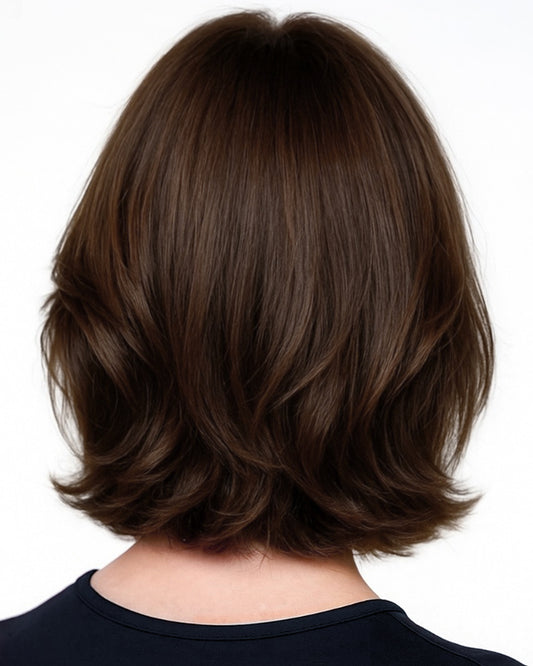 Maya | 14" Brown Straight Bob with Bangs Glueless Swiss Lace Closure Wig - WS013