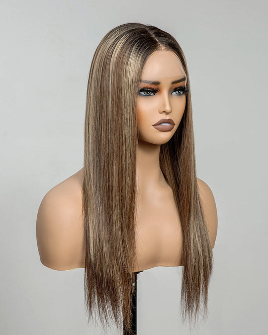 Sierra | 22" Ash Brown with Golden Highlights Soft Wavy Glueless Swiss Lace Closure Wig - WW039