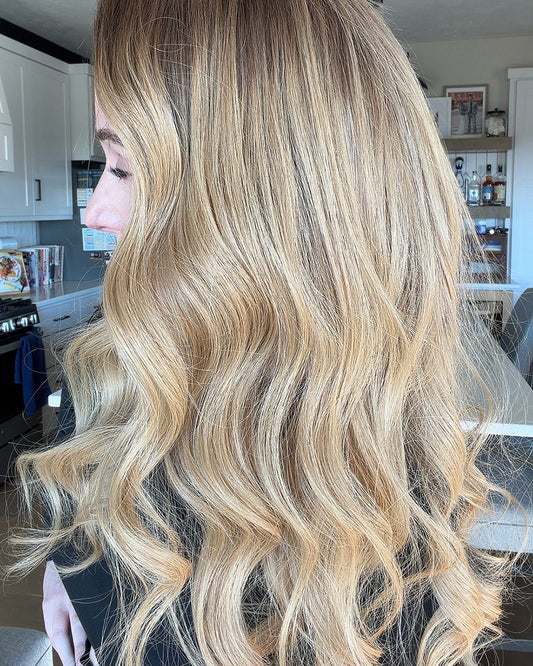 Paige | 22" Honey Blonde with Dark Roots Loose Wave Glueless Swiss Lace Closure Wig - WW037