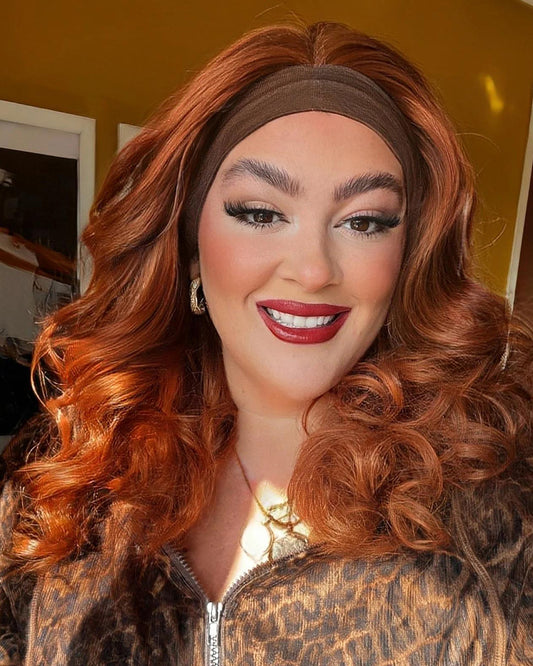 Lottie | Perruque Lace Front en Cheveux Humains, Ondulée Rouge Cuivré de 22 pouces avec Frange Rideau Dégradée - WW061