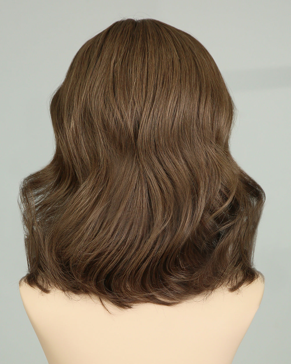 Arden | 14" Warm Medium Brown Wavy Human Hair Swiss Lace Front Wig - WW057