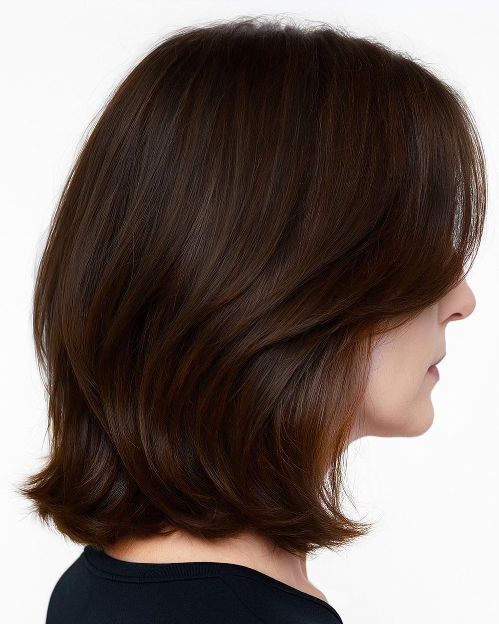 Maya | 14" Brown Straight Bob with Bangs Glueless Swiss Lace Closure Wig - WS013