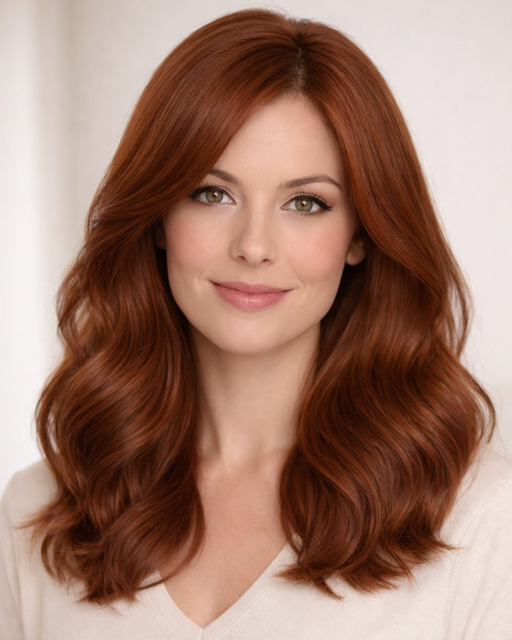 Hair Color: Toasted medium ginger base with no highlights and no root