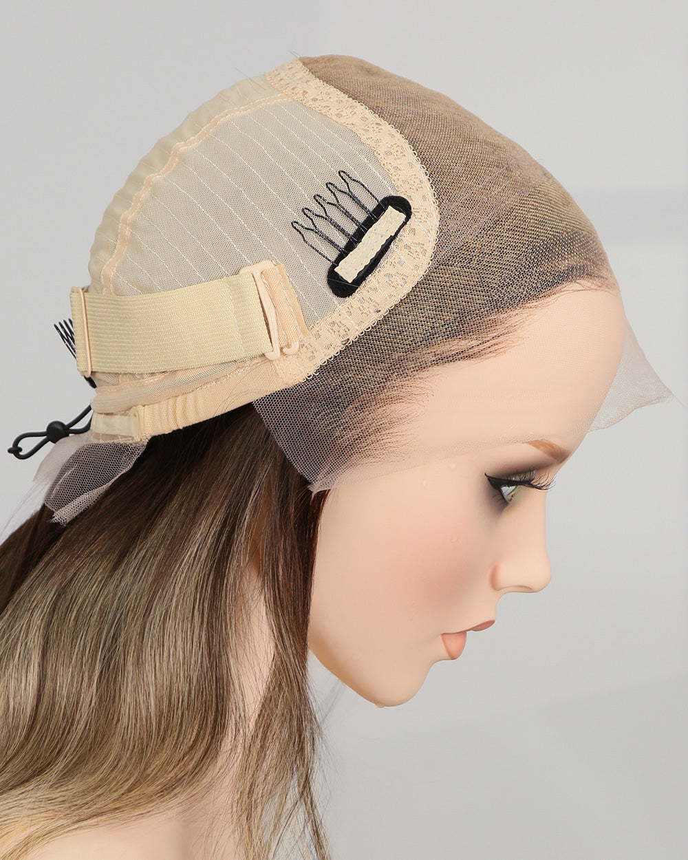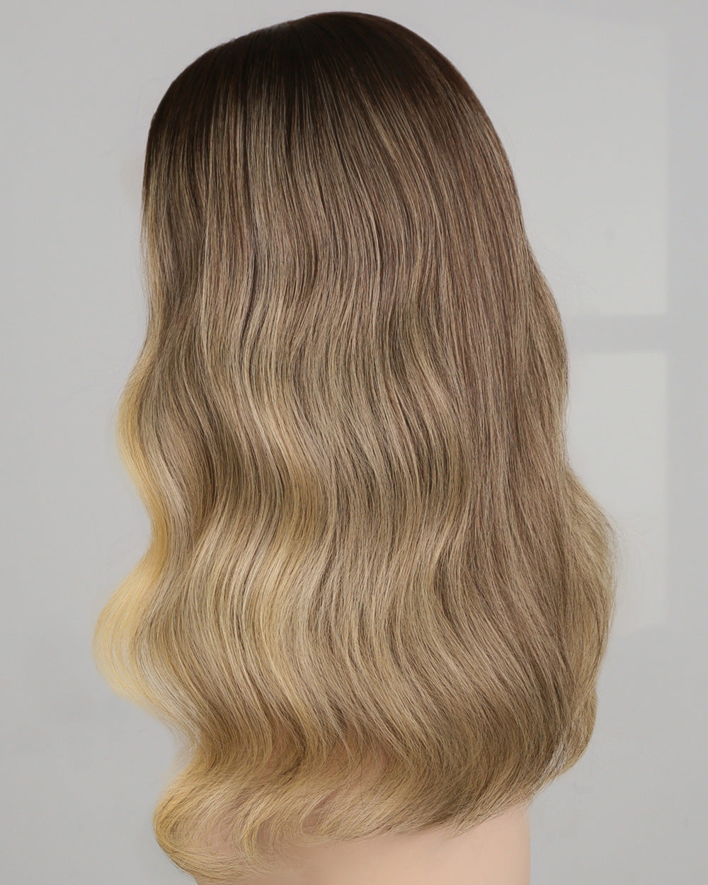 Vera | 20" Blonde Balayage With Dark Roots Human Hair Swiss Lace Front Wig - WW049